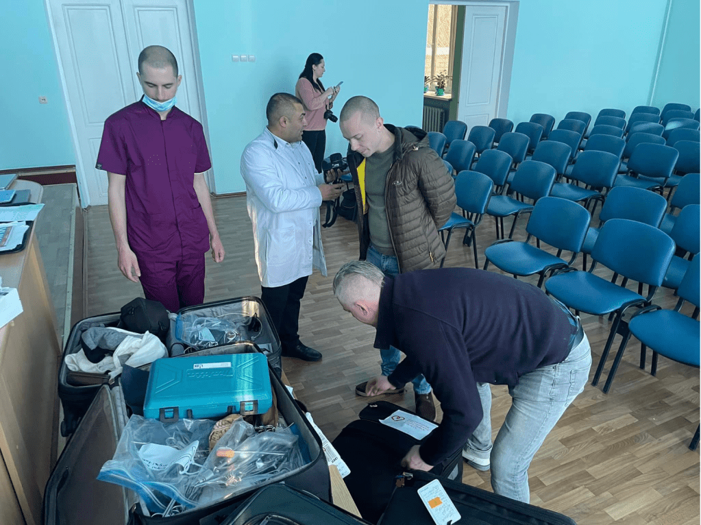 In February 2023, Jeff Sloychuk, Vita Kurylo, and Parviz Ahangi made UCAY’s inaugural trip to Ukraine. They delivered over 30 suitcases full of warm jackets, boots, thermal clothing, radios, laptops, tablets, cell phones, GPS units, power banks, medical equipment, and other needed supplies to the communities of Chortkiv, Buchach, and Yuzhnoukrains’k.
